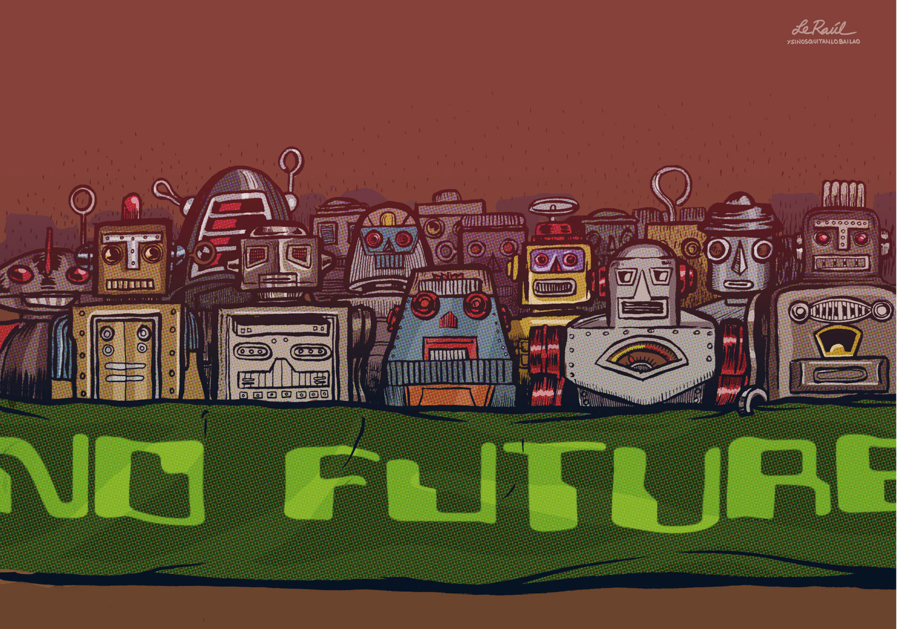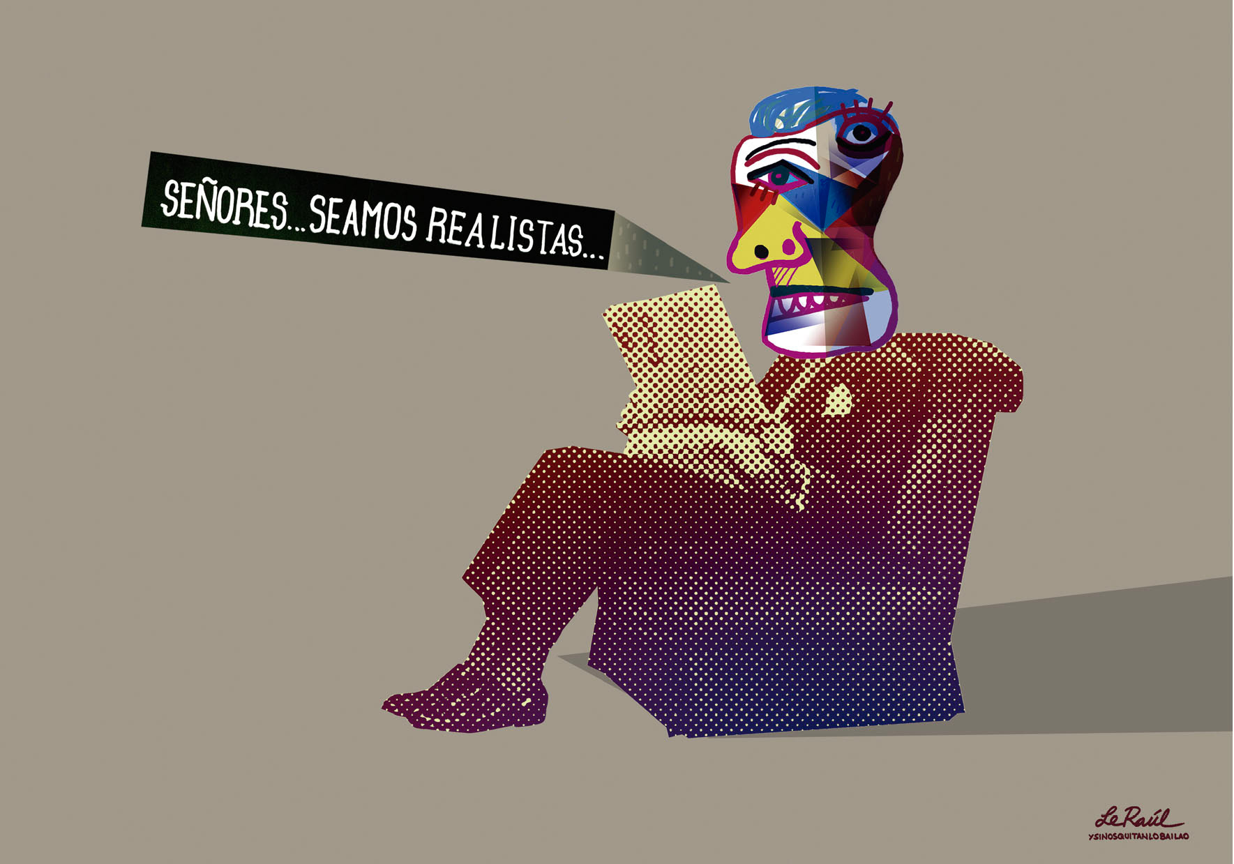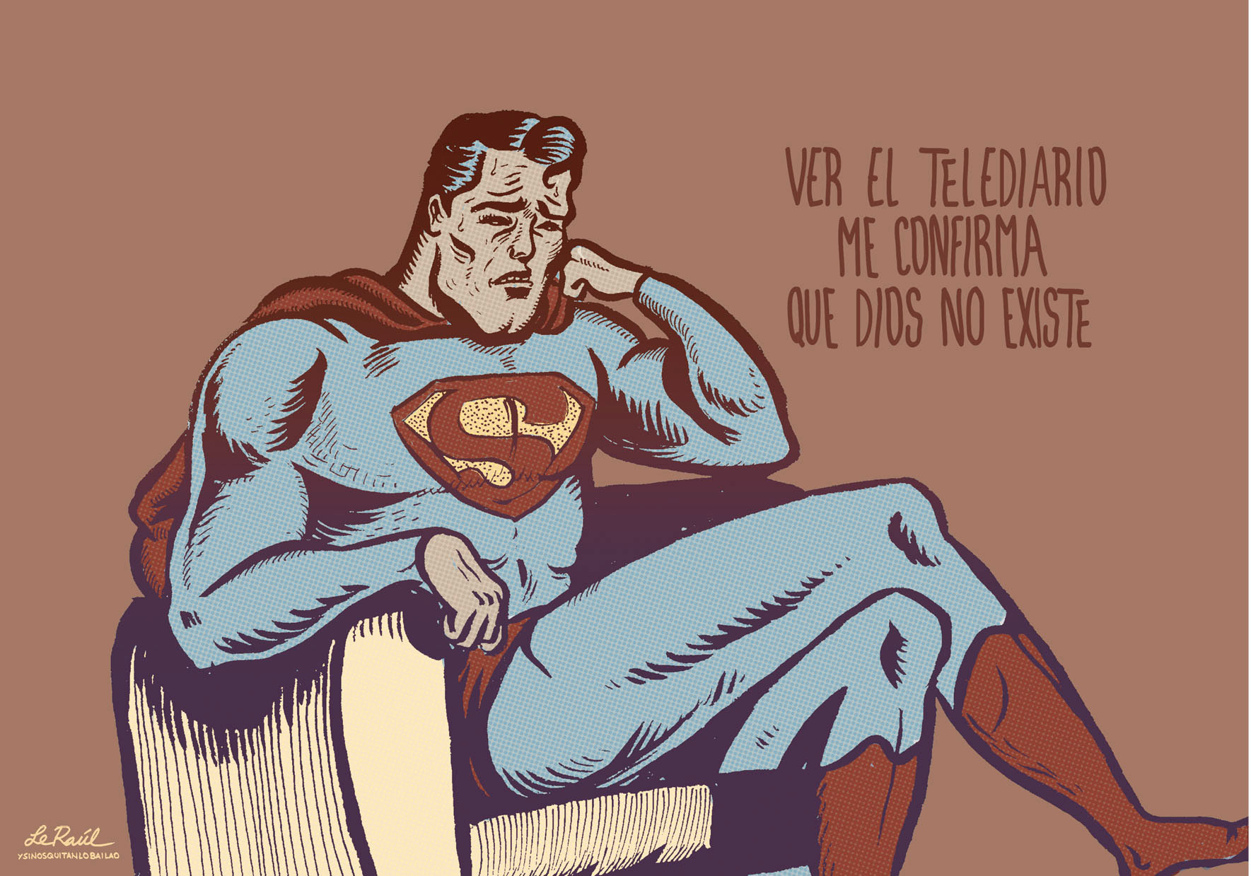 Libro de humor gráfico que recopila piezas desarrolladas para diferentes publicaciones como El País, Yorokobu, Diagonal, Mongolia, TMEO y trabajo personal. Publicado por Autsaider Comics en 2013, 166 páginas, color.